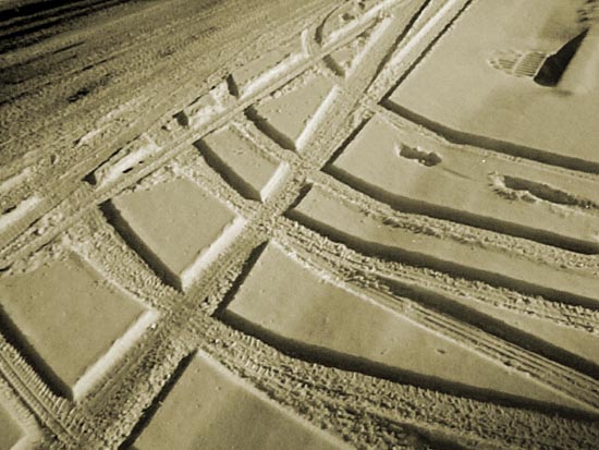 years ago, when we used to get actual snowfall around here, the first outdoor mission of the day was a heartsplit experience. something pure or taoist or artistic inside would grab me with the desire not to violate the smooth blankets with the contaminated texture of my footprints. the snow covered all ground equally, erasing roads, stepping stones, sidewalks and other tracks of progress. at the same time, the urge to be the first kid to tear across the neighborhood and corrupt all of that pure, unpatterned surface was undeniable. that was the urge that always won of course. you can bet i'm not going to let my brother or my friend erik get outside before me. snowdays were hard work.