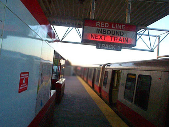 After Savin Hill, I try to psych myself up and stay optimistic, but I'm beginning to lose the battle on the mental front. Several of my lobes have united and initiated some kind of override process to take control away from the small minority of synapses that, through steady repetative elecrto-chemical command, is preventing me from wetting myself in an enclosed public space. Once the doors finally do open in Field's corner, I'm delighted. I jump out into the unfamilliar station, glance left, glance right, yell for my brother to hold the bus for chrissakes and begin to sprint-limp to the left, following along an endless brick wall. Once I finally get to the end, I turn the corner with jeans already unbuttoned and, right then and there, begin to unleash 130 seconds of sweet relief down a rather nice-looking flight of concrete stairs. Fortunately, the stairs are vacant, though well lit. The relief is awkward, and not exactly relaxing, but certainly glorious. I'm so worried about missing the train that I bail with still a quarter tank to go. I save that for the Braintree parking garage.
