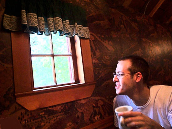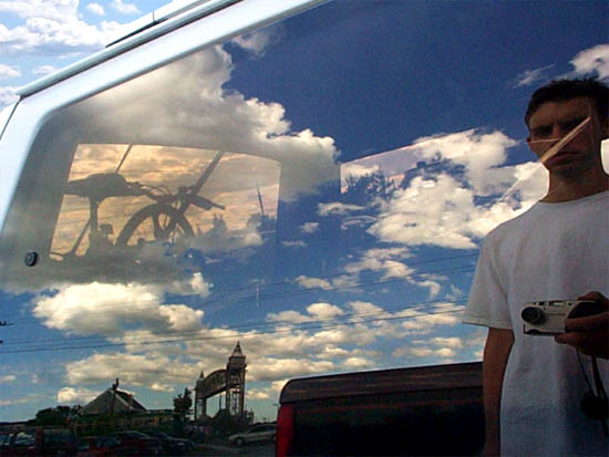 Photography? I've been fiddling around for eight years with my classic Pentax K1000 fully manual SLR. That is, I had been fiddling around for eight years. I haven't touched that thing, bought film or paid for developing since I received a digital camera for X-mas, and considering my present economic-water-treading, I'd like to keep it that way. Someday I'll have the ducats to buy a digital SLR, but until then I'll be stop-bath drooling over the golden years, when I had control over depth of field in my images. With the aperture control on my 35mm camera, I can control which elements of a scene will appear in focus in the final image. With my digital camera, every person I take a picture of inevitabley has a tree growing out of their head. Because of this limitation, I think my strongest digital photographs operate in a flat plane, relying on structure, compositional elements, and color, just as an abstract painting might.