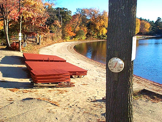 autumn at ellis haven campgroundAfter a tough weekend of cooking and two beers, Matt and I took a Sunday night drive downtown to get some coffee and we took along his large Belle and Sebastien looking white German Shepard named Shenney and we found a perfect place to park right in front of Sean O'Toole's, and as I stepped out of the vehicle I noted to myself that his Pathfinder still sounded like it was running, then Lo and Behold Matt yells, "Please tell me you didn't lock your door", because he has, somehow or another, locked his keys and his Large Dog inside of his Big Running Truck, so we decide to grab out coffee and tackle the problem once we've had a chance to whet the old whistle, but all we can figure to do is to coerce Shenney into the front seat and hopefully get her to paw at the unlock button, but when that doesn't work I walk into Plymouth House of Pizza and find some cops and ask them if anybody has a slim-jim to break into the truck with, and they don't, but one of the occifers offers to call AAA for us, priority-style, and soon enough the tow truck comes and dude helps us break into the truck and rescue Shenney, but not before we run into Erik and Stephanie, whom we join for a walk to Friendly's for ice cream break.