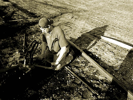 i'm not sure if it's april or october, i just know it can't be january. i'm glad i didn't leave town sooner, because i would have missed this suprise throwback to last spring: corn-muffin coffee breaks, sap-sticky hands, straining muscles, dusty pickup trucks and the smell of hot air freshener. there's something especially satisfying about spending five hours dismantling one hundred yards of chain-link fence in the sixty-degree air, while ted and pru erect a classic wooden split-rail fence to take its place. i took down all that stonewashed-denim-colored aluminum with my own hands, a pair of vice grips, a half-inch rachet and a two-ton backhoe.
