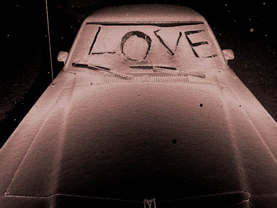 Wintry Mix of snow and ice and slush and blah. Maybe the Brian Eno/David Byrne cd was distracting. It was totally out of character. I don't think I felt any more sleepy than usual, either. Eventually I found myself on 195, driving by that kinda-funny-but-mostly-just-erie neon animated cowboy, buckin' and broncin'. I nearly wiped out while heading down a neverending slipperyass offramp. I decided to listen to my two favorite tracks from Ray of Light, for some reason. Then one thing became all at once clear: it